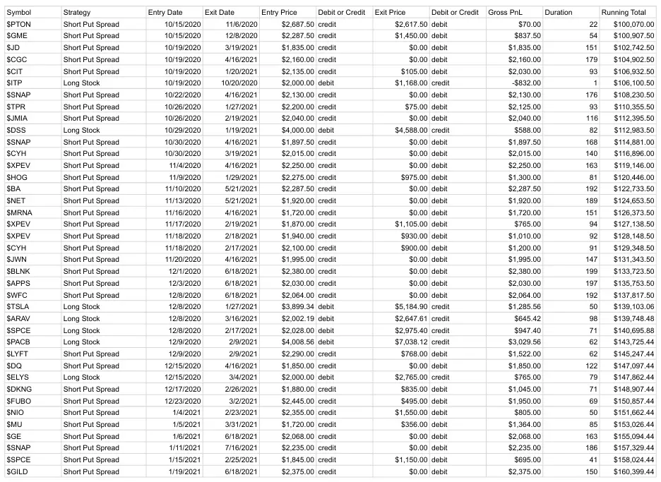You can review trades taken since October 2020 to see the types of setups used and how they performed over time.